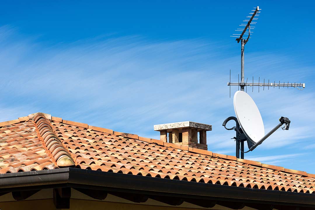 ATS installe sur tous les types de toit votre antenne, que ce soit sur une fixation en pignon, en fausse tuile, sur une cheminée, etc.
